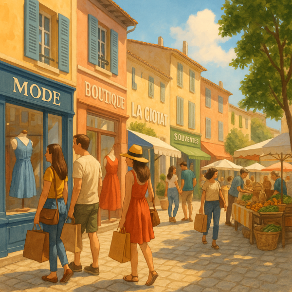 La Ciotat offre des boutiques de vêtements, décoration, artisanat, et des marchés alimentaires.