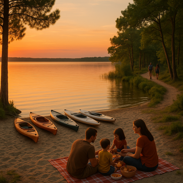 À seulement quelques kilomètres, le lac de Carcans-Hourtin enchantera ceux qui recherchent une ambiance différente. Avec ses eaux calmes, c'est l'endroit idéal pour pratiquer des activités nautiques telles que le paddle ou le canoë. En famille, vous pourrez pique-niquer sur les plages qui bordent le lac, tout en profitant d'une vue imprenable sur la nature environnante.