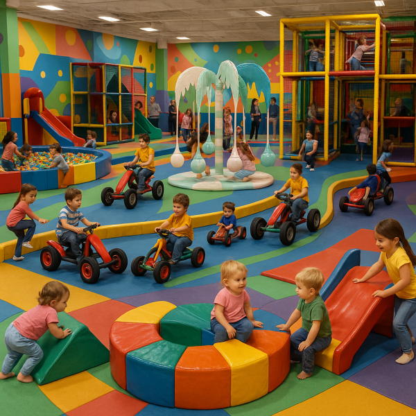 Ce parc comprend plusieurs zones de jeux parfaitement adaptées aux différentes tranches d'âge. Les enfants de 0 à 4 ans ont accès à des structures douces et colorées, tandis que les 4 à 12 ans peuvent s'aventurer dans des activités plus stimulantes, comme le karting ou des terrains de jeu interactifs. Cela permet à chaque enfant de s'amuser à son niveau et d'explorer en toute sécurité.