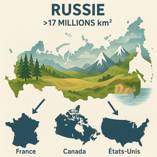 La Russie a une superficie d'environ 17 125 191 km², ce qui en fait le plus grand pays du monde.