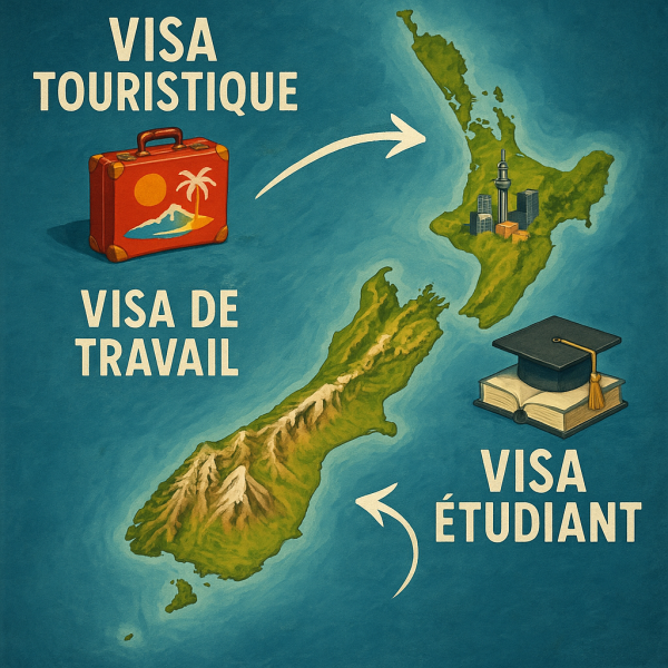 Vous envisagez de partir en Nouvelle-ZĂ©lande mais vous ĂȘtes perdu parmi les diffĂ©rents types de visas disponibles ? Vous ĂȘtes au bon endroit ! Cet article vous guide Ă travers les options de visa pour des sĂ©jours de courte et longue durĂ©e, que ce soit pour le tourisme, le travail ou les Ă©tudes. En quelques minutes, vous disposerez des informations essentielles pour prĂ©parer votre aventure kiwi sans stress.
