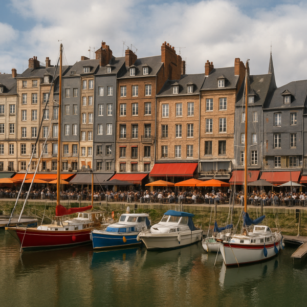 Direction Honfleur, l’un des plus beaux ports de France, idéal pour une caresse maritime. Ce bourg pittoresque vous séduira par ses rues pavées et ses maisons à colombages.